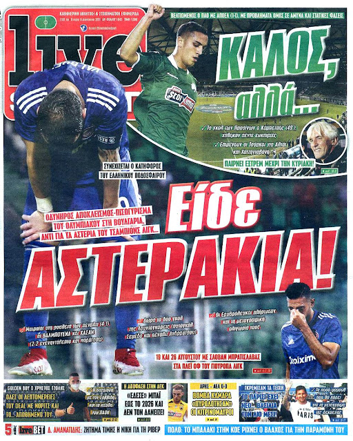 Τί γράφουν όμως τα σημερινά πρωτοσέλιδα του αθλητικού τύπου για την αποτυχία του Ολυμπιακού.